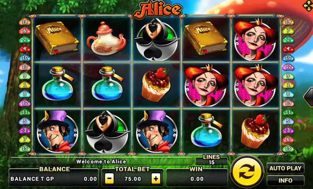 ตะลุยดินแดนของอลิซกับเกมสล็อต Alice การเดิมพันสุดมหัศจรรย์ ที่เล่นสนุก มีรางวัลมากมาย มีอัตราการจ่ายสุดพิเศษที่จะบวกเพิ่มเงินรางวัลสุดคุ้ม สัญลักษณ์พิเศษมากมายที่จะทำให้การเล่นตื่นเต้นเร้าใจไม่ธรรมดา ใครที่อยากเล่นสล็อตให้คุ้มค่า เงินดี ต้องเกมนี้เลย